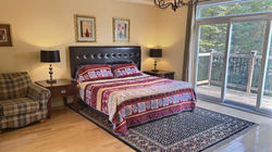 La chambre principale « suite » inclus un lit « king », une terrasse de 9 pi avec un balcon et vue du lac, plafond-haut de 9 pieds, salle de bain attenante avec une baignoire jacuzzi double et vue du lac et une douche double et un grand placard « walk-in ».